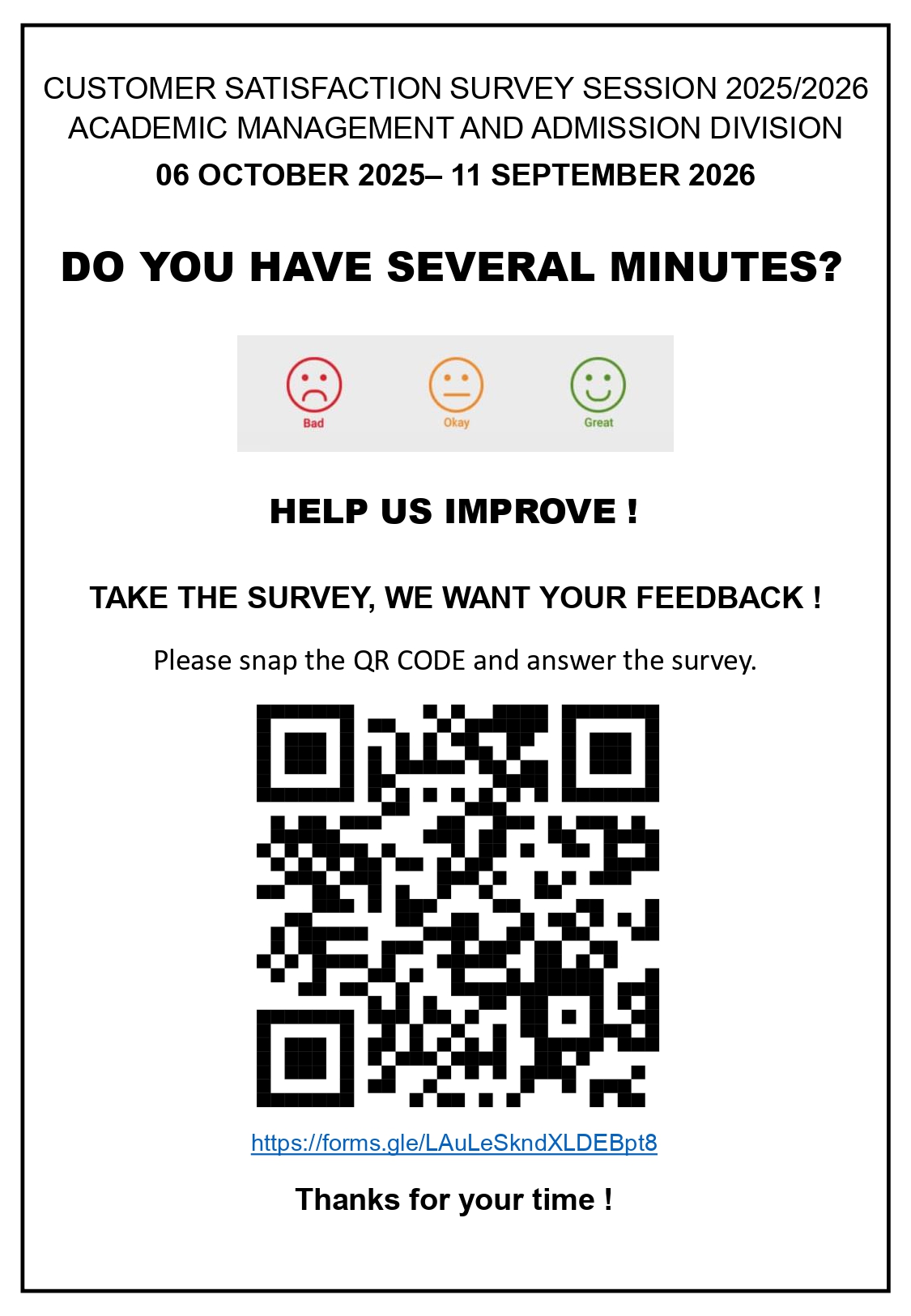 📢 AMAD COUNTER OPERATIONAL HOURS: Monday - Thursday : 8.30 AM - 12.30 PM & 2.00 PM - 4.30 PM | Friday : 8.30 AM - 12.15 PM & 2.45 PM - 4.30 PM | SATURDAY, SUNDAY AND PUBLIC HOLIDAY: CLOSED ACADEMIC MANAGEMENT AND ADMISSION DIVISION (AMAD) | IIUM Admissions Academic Calendar Important Dates Examination Timetable Change of Programme