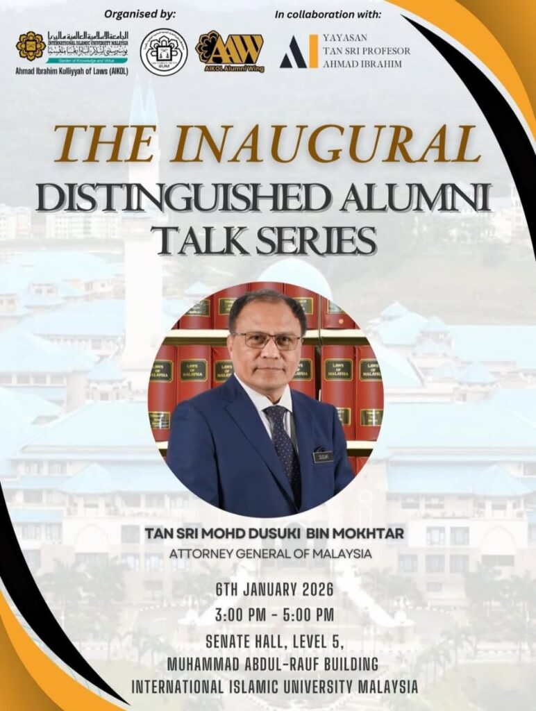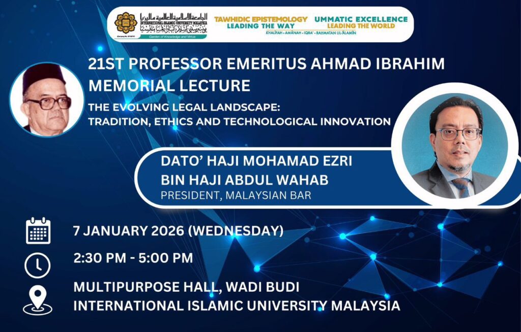 7 January 2026 — Join the Ahmad Ibrahim Kulliyyah of Laws (AIKOL) for the 21st Professor Emeritus Ahmad Ibrahim Memorial Lecture: The Evolving Legal Landscape: Tradition, Ethics and Technological Innovation. Dato' Haji Mohamad Ezri bin Haji Abdul Wahab (AIKOL 1993), President of the Malaysian Bar.