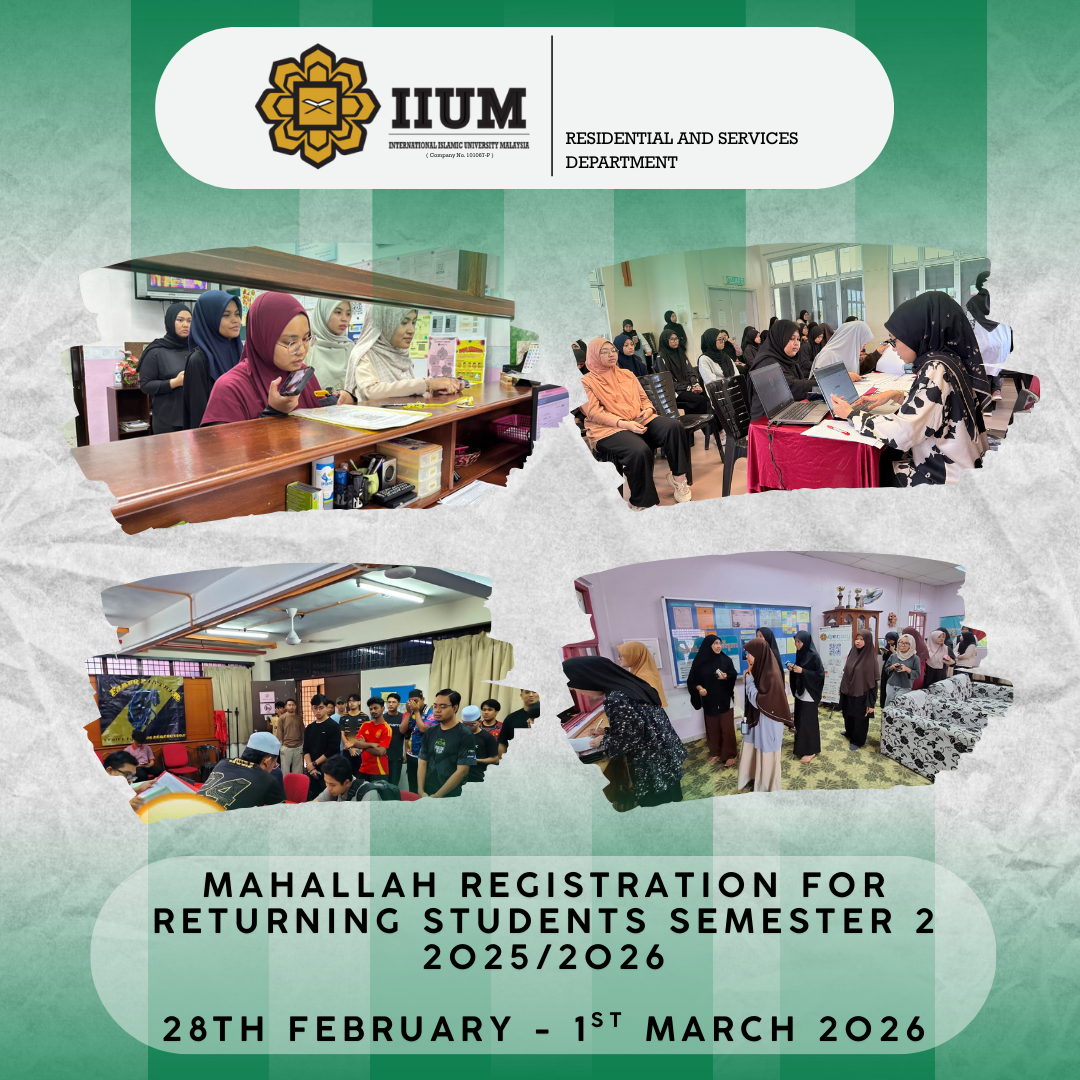 OUR SERVICES STUDENT RESIDENTIAL (MAHALLAH) FOOD COURT / CAFETERIA AUDITORIUM / HALL OFF-CAMPUS APARTMENT IIUM HOMESTAY AUXILIARY SERVICES RSD ACTIVITIES