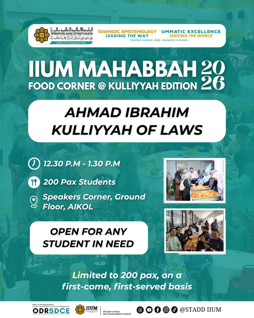 The Student Affairs and Development Division (STADD) will be organizing a special food distribution program for students in need at the Kulliyyah level.