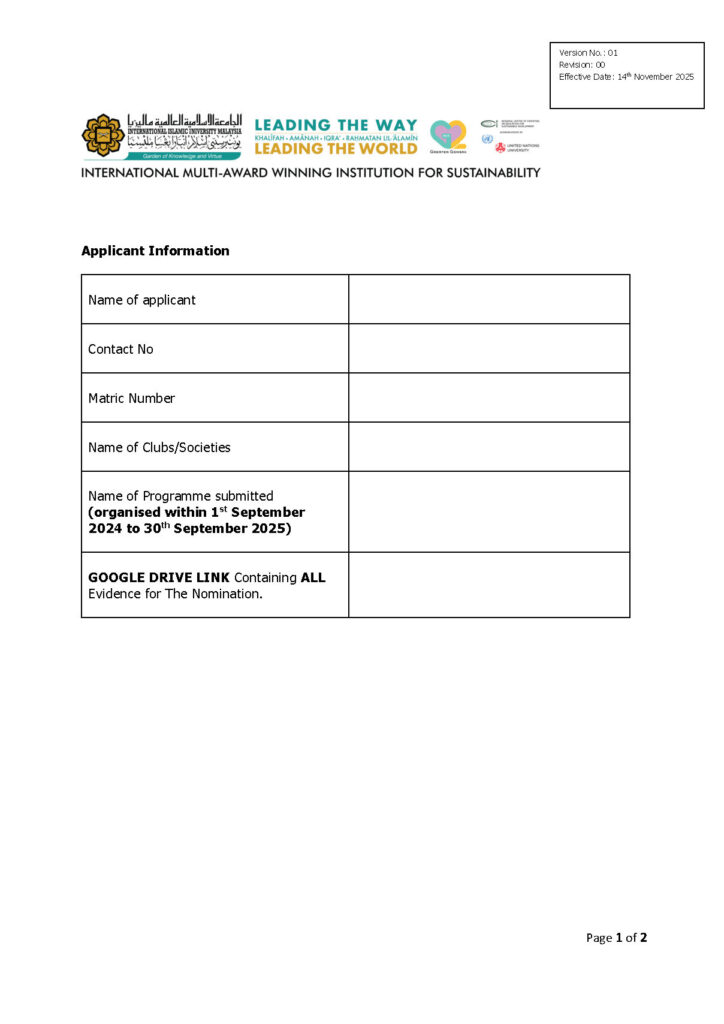 - Evaluation is based on the significant achievements of the individuals or clubs and societies within the period of 1st September 2024 until 30th September 2025 only.